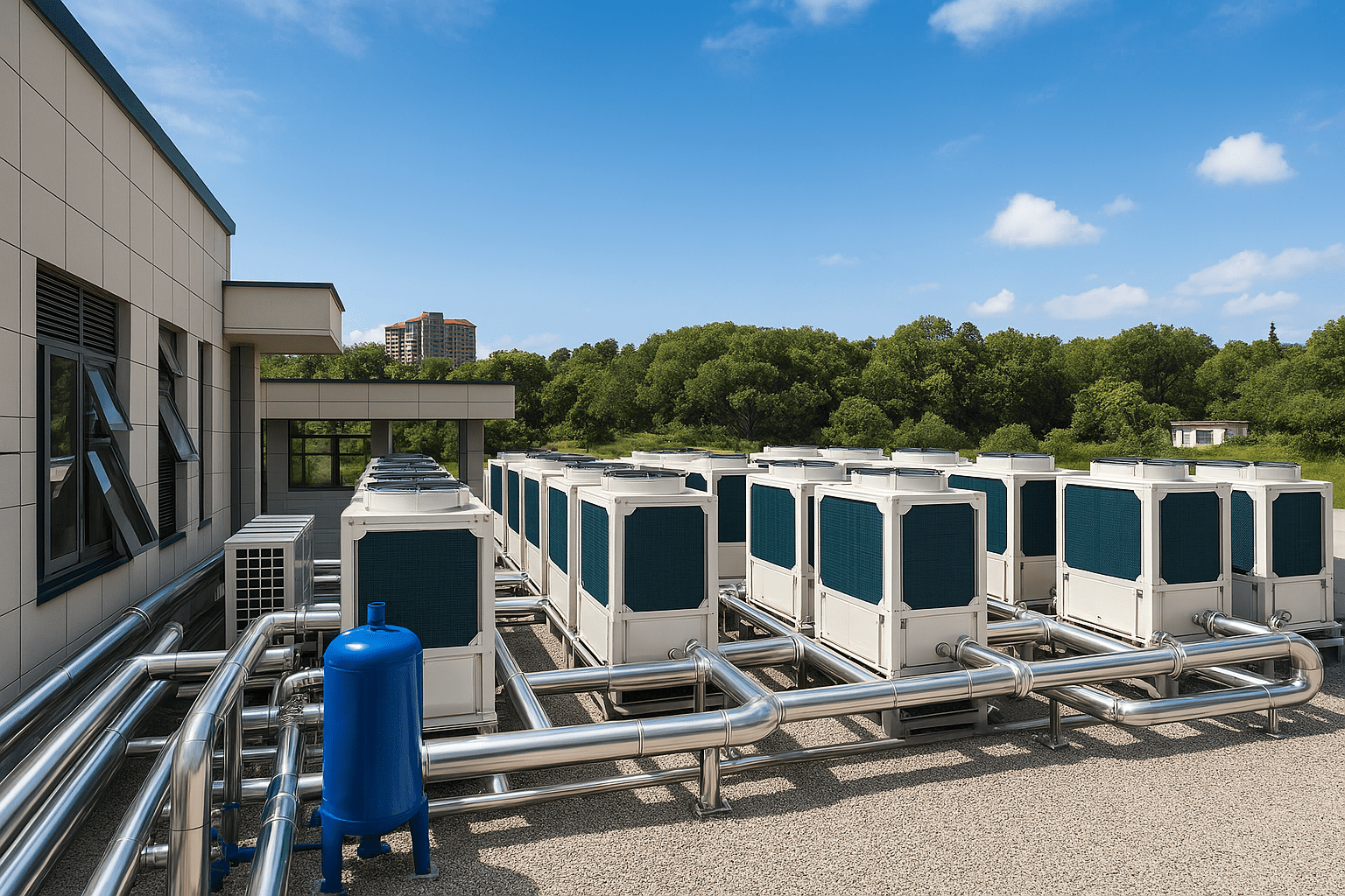 - Thermal Energy Storage (TES) Tanks: Used in some systems (especially district cooling) to store chilled water generated during off-peak hours for use during peak demand, reducing operating costs.